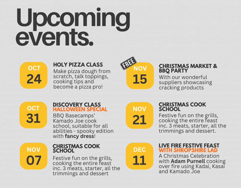 We have all fallen in love with outdoor cooking throughout lockdown, and from hosting demo days in store most weekends in the summer. We launched BBQ Basecamp Cook School in March 2023 offering exclusive hands on cooking experiences in our self built shack (by team Basecamp’s John). If you join us, you will cook, learn, chat, eat and drink until your hearts (and belly’s) content. From sizzling steaks to juicy kebabs, curries, paella, sweet treats and more, we will show you how to create delicious quality dishes on your grills, in the comfort of your own garden.