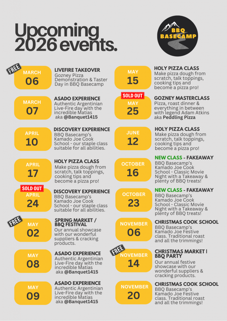 We have all fallen in love with outdoor cooking throughout lockdown, and from hosting demo days in store most weekends in the summer. We launched BBQ Basecamp Cook School in March 2023 offering exclusive hands on cooking experiences in our self built shack (by team Basecamp’s John). If you join us, you will cook, learn, chat, eat and drink until your hearts (and belly’s) content. From sizzling steaks to juicy kebabs, curries, paella, sweet treats and more, we will show you how to create delicious quality dishes on your grills, in the comfort of your own garden.